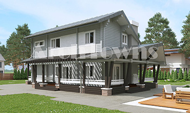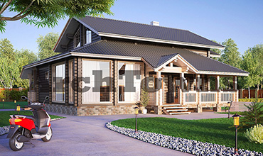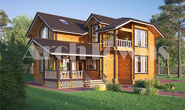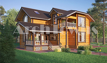 Общая площадь дома, кв. м.: 293 Материал: Бревно Стиль: Классический Этажность:Одноэтажные с мансардой Число спален: