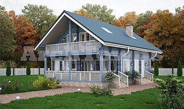 Общая площадь дома, кв. м.: 179 Материал: Бревно Стиль: Классический Этажность:Одноэтажные с мансардой Число спален:
