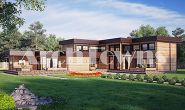 Общая площадь дома, кв. м.: 400 Материал: Брус Стиль: Современный Этажность:Одноэтажные с мансардой Число спален: