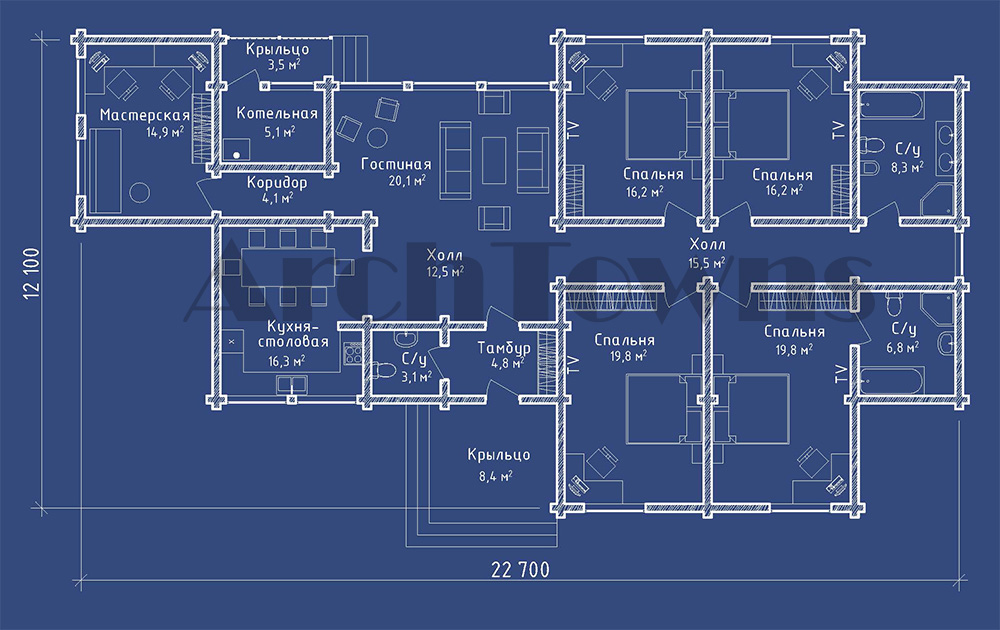 Общая площадь дома, кв. м.: 195