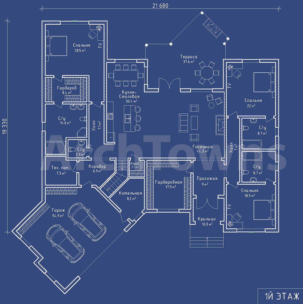 Общая площадь дома, кв. м.: 418